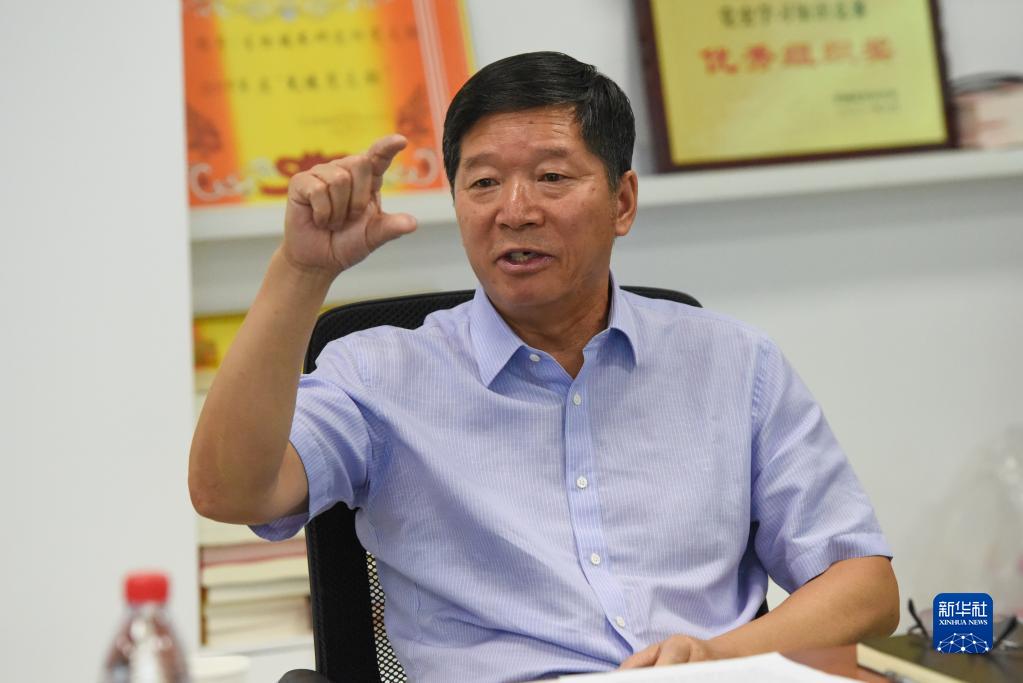 在新疆畜牧科學(xué)院,研究員劉明軍介紹基因編輯的短尾細毛羊(8月6日攝)。新華社記者 丁磊 攝