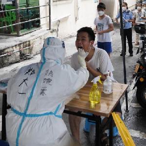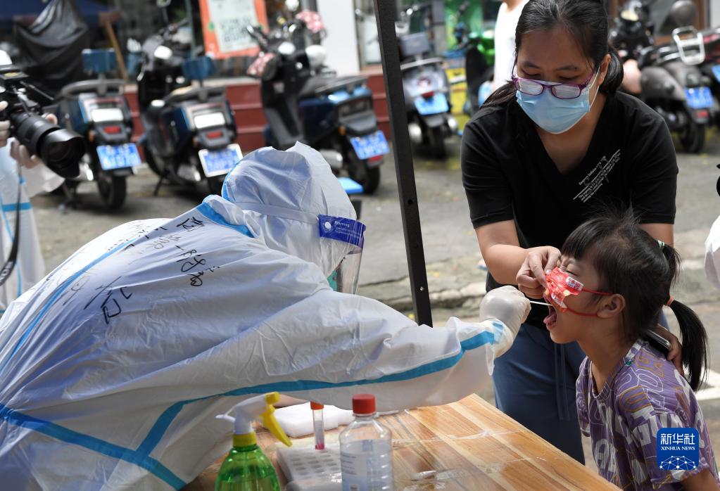 8月11日,在三亞市天涯區南邊海漁村,河南省援海南三亞醫療隊的醫護人員原清怡為居民做核酸檢測。