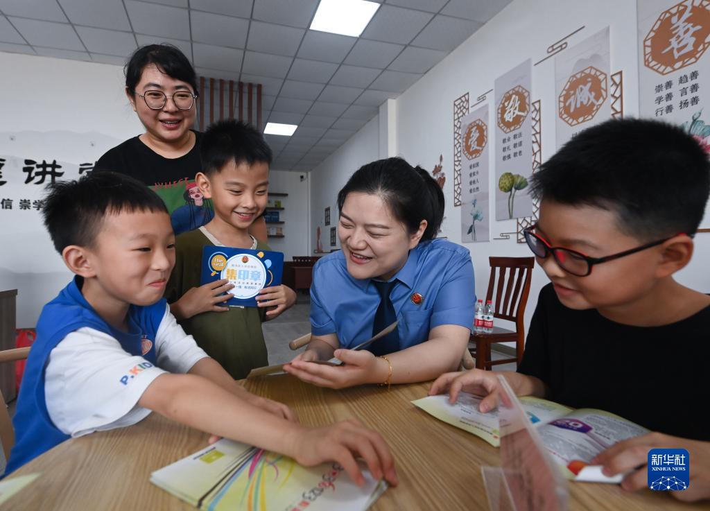8月11日,湖州市南潯區檢察院工作人員為黃泥兜村的孩子和家長(cháng)做未成年人保護普法宣傳。