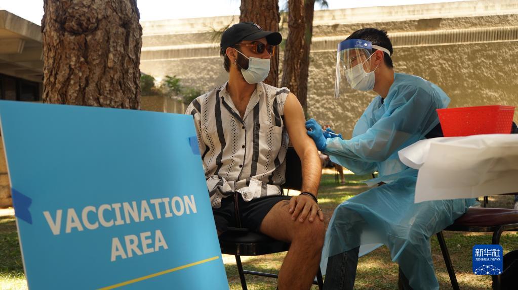 8月11日,一名男子在美國洛杉磯一處猴痘疫苗接種點(diǎn)接種疫苗。