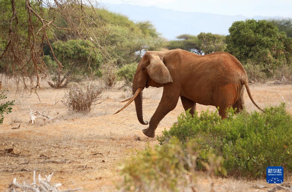 這是7月28日在肯尼亞察沃國家公園拍攝的大象。