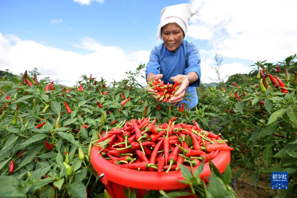立秋過(guò)后,貴州省黔南布依族苗族自治州龍里縣灣灘河鎮辣椒迎來(lái)采摘季,當地群眾忙著(zhù)采摘、搬運、分裝、加工辣椒,供應市場(chǎng)。