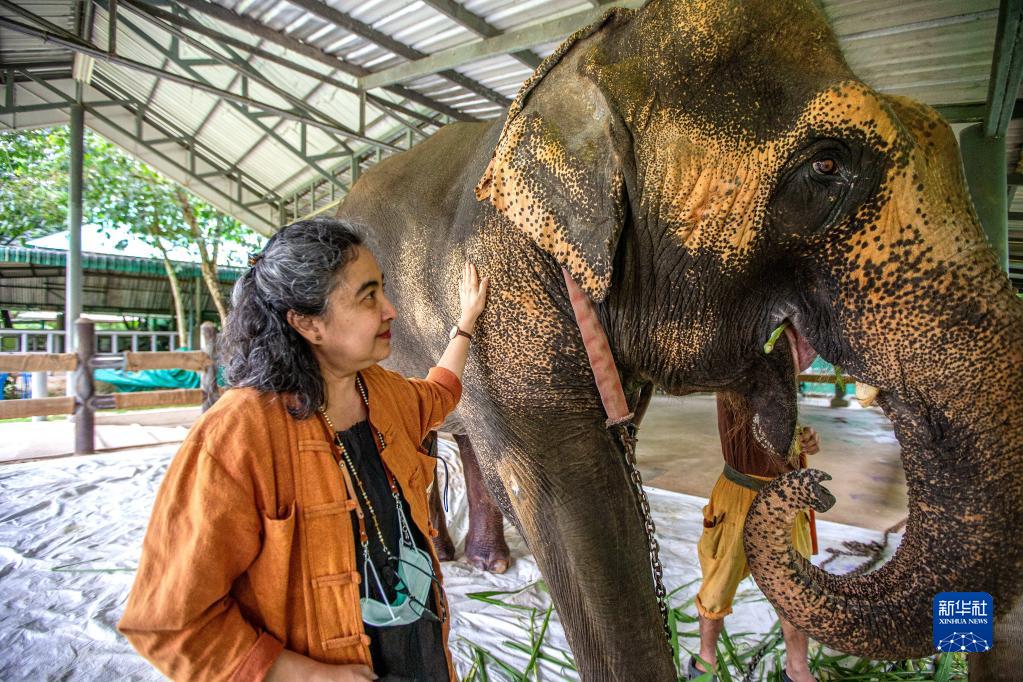 8月6日,在泰國南邦府“亞洲象之友”大象醫院,蘇賴(lài)達·薩瓦拉看望一頭受傷的大象。