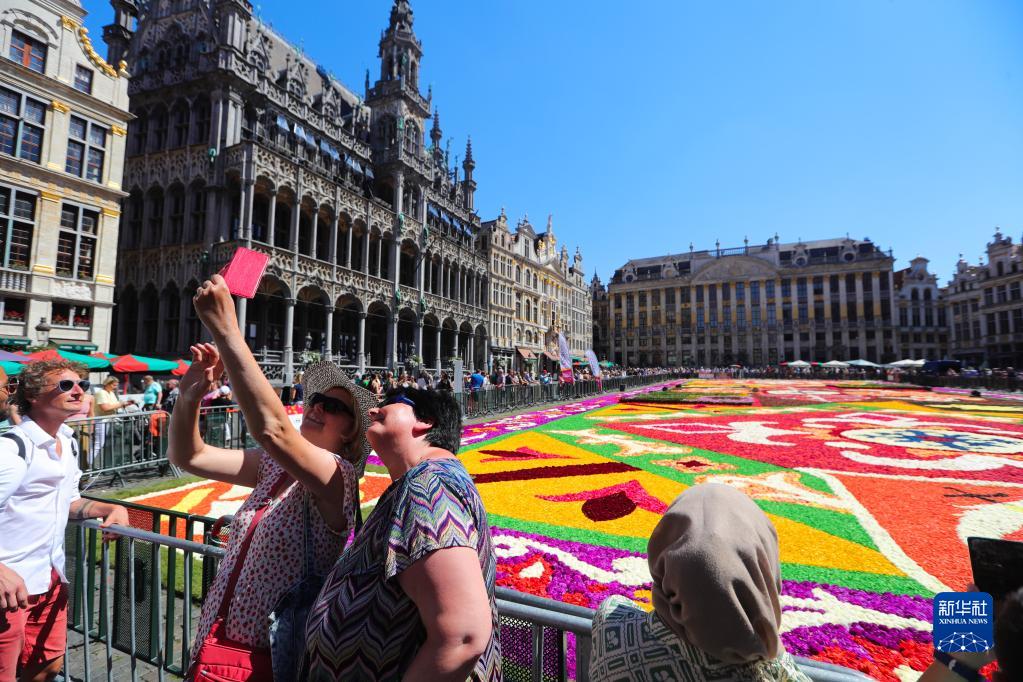 8月12日,民眾在比利時(shí)布魯塞爾大廣場(chǎng)參觀(guān)“鮮花地毯”。