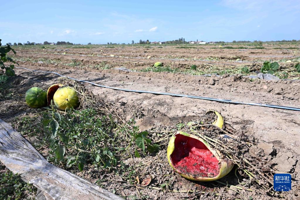 這是8月12日在意大利倫巴第大區曼托瓦拍攝的因干旱受損的西瓜。