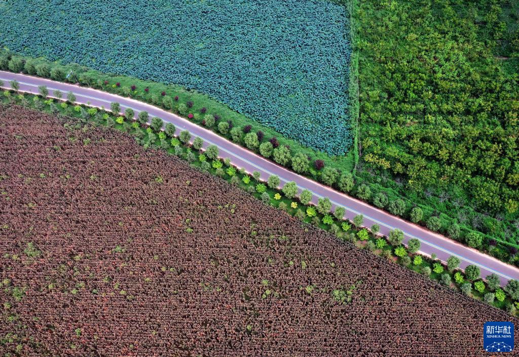 這是8月11日在河南省洛陽(yáng)市孟津區拍攝的黃河生態(tài)廊道(無(wú)人機照片)。