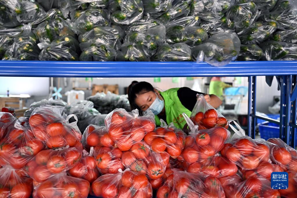8月13日,三亞美菜網(wǎng)配送網(wǎng)點(diǎn)的工作人員在搬運蔬菜。