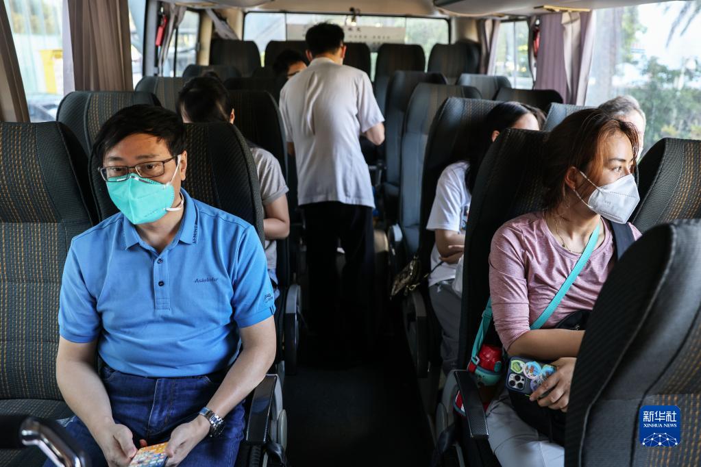 8月14日,準備返程的旅客乘坐前往??诿捞m機場(chǎng)的大巴車(chē)。