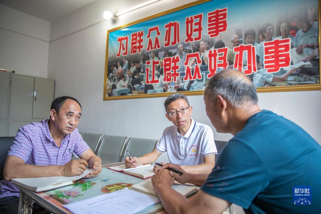 8月11日,在重慶市巫溪縣田壩鎮田壩村,駐村第一書(shū)記蔣在強(中)和村工作人員一起討論需要解決的民生問(wèn)題。