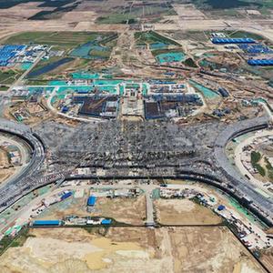 這是8月15日拍攝的呼和浩特新機場(chǎng)工程施工現場(chǎng)(無(wú)人機照片)。