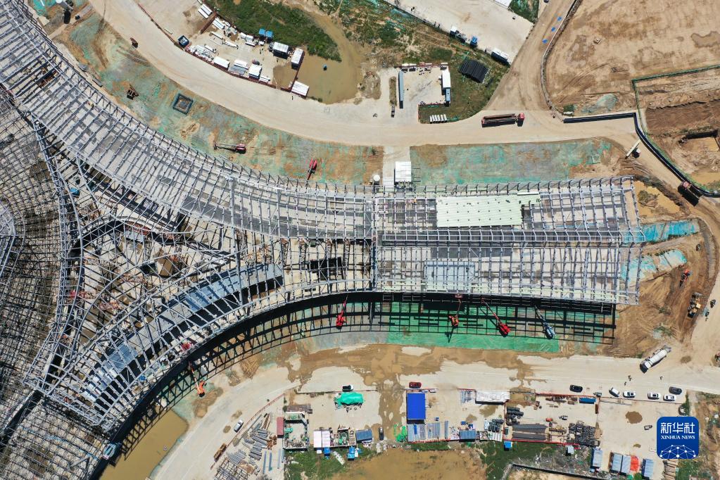 這是8月15日拍攝的呼和浩特新機場(chǎng)工程施工現場(chǎng)(無(wú)人機照片)。