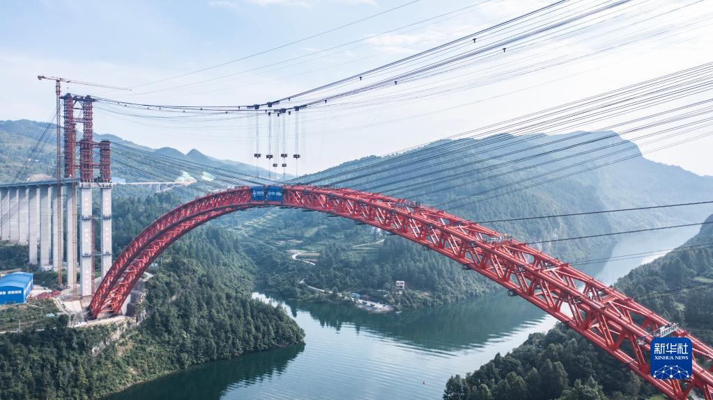 8月15日拍攝的德余高速烏江特大橋合龍現場(chǎng)(無(wú)人機照片)。