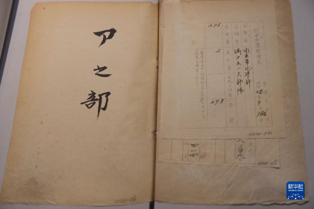 這是侵華日軍第七三一部隊罪證陳列館首次公開(kāi)的《關(guān)東軍化學(xué)部留守名簿》(8月13日攝)。