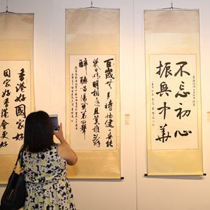 中國書(shū)協(xié)香港分會(huì )主席施子清表示,分會(huì )會(huì )員用書(shū)法作品表達拳拳赤子心,弘揚中華傳統文化?!拔覀兺ㄟ^(guò)書(shū)法創(chuàng )作,歌頌祖國、祝福香港?!?/p>