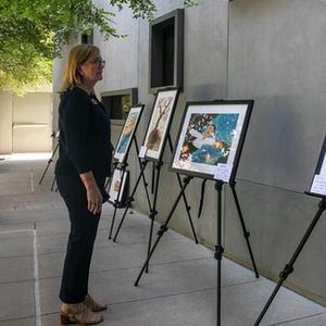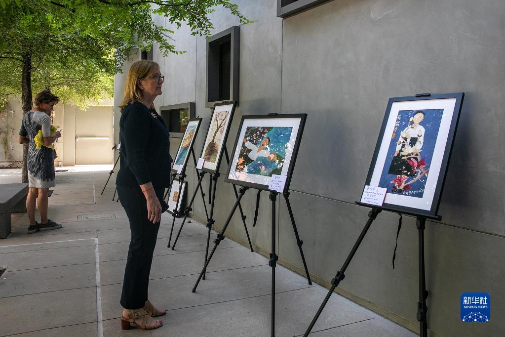 8月14日,在美國得克薩斯州達拉斯市舉行的世界“慰安婦”紀念日活動(dòng)上,觀(guān)眾觀(guān)看以“慰安婦”為主題的畫(huà)展。新華社發(fā)(金新 攝)