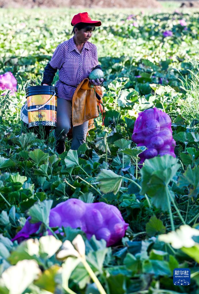 8月15日,種植戶(hù)在田間收獲貝貝南瓜。