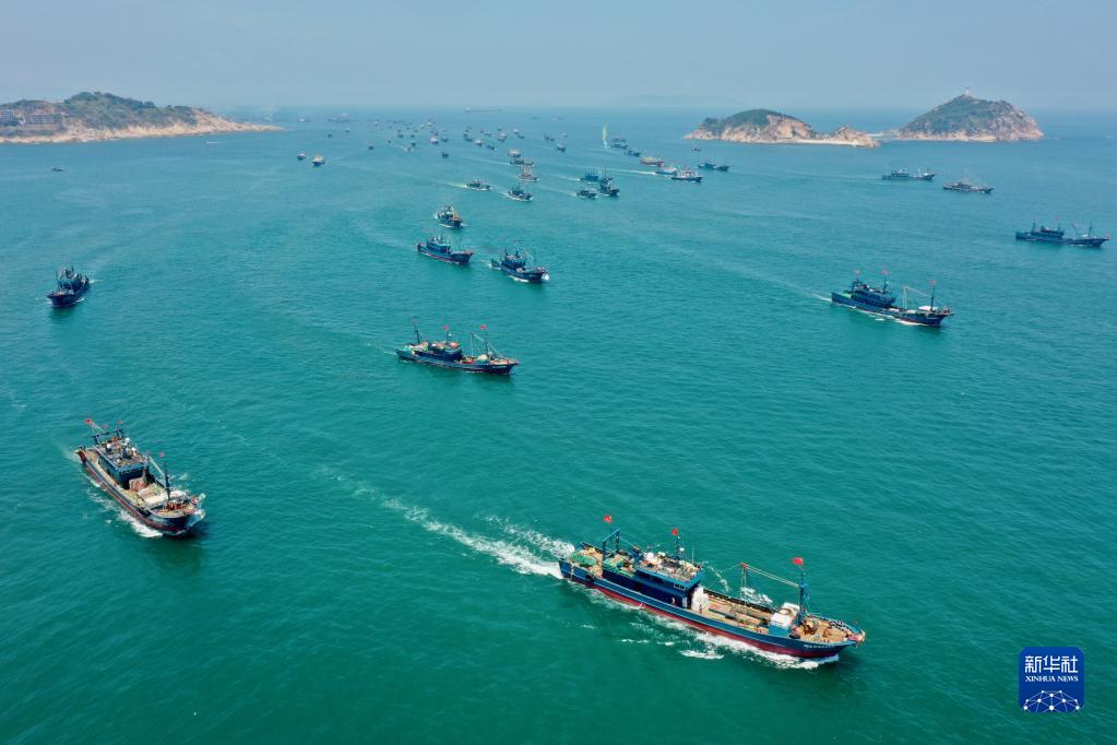 當日12時(shí),福建省部分海域(北緯26度30分以南的福建海域)結束為期三個(gè)半月的伏季休漁期,漁民開(kāi)始出海作業(yè)。在福建省福州市連江縣海域,近千艘漁輪分別從黃岐、苔菉兩個(gè)中心漁港駛向東海。