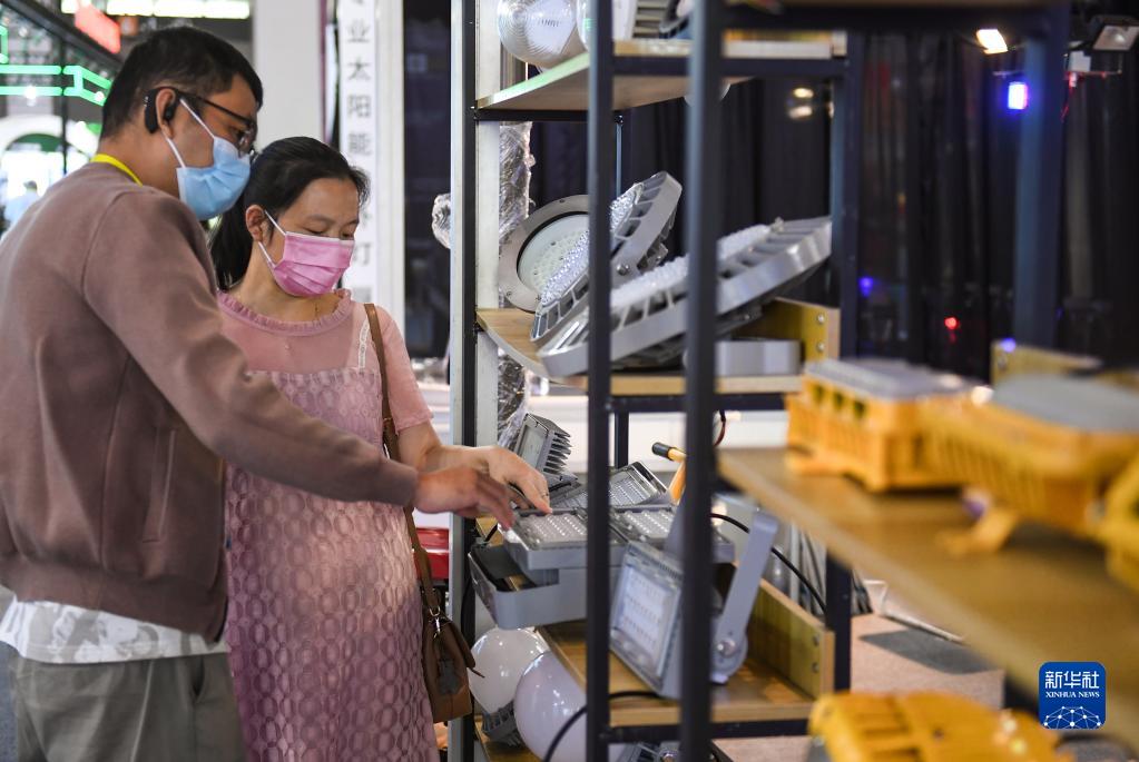 8月16日,在第六屆絲綢之路國際博覽會(huì )綠色產(chǎn)業(yè)館,展商為參觀(guān)者介紹綠色照明產(chǎn)品。