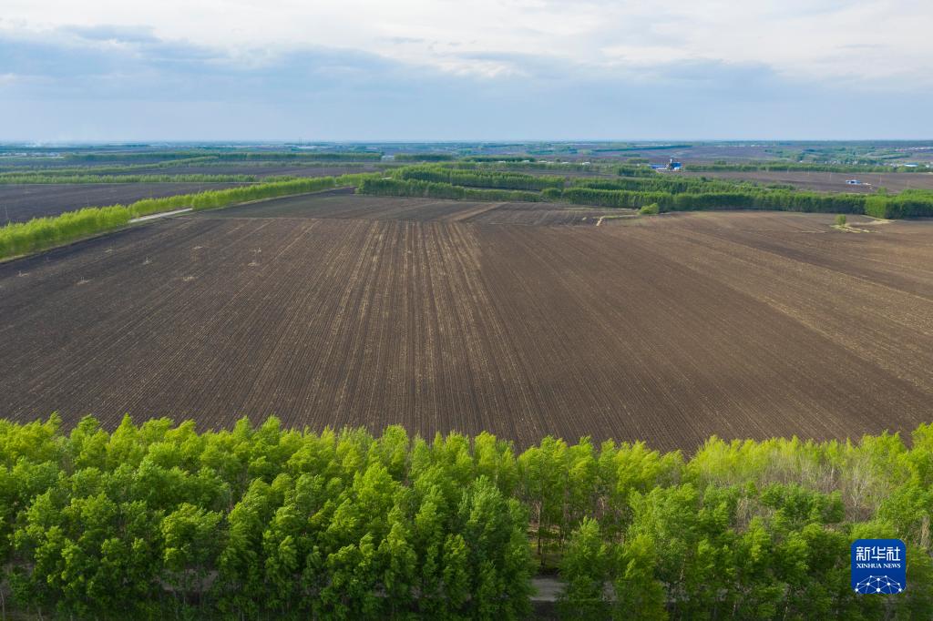 黑龍江省海倫市前進(jìn)鎮光榮村已完成播種的黑土耕地(2022年5月23日攝,無(wú)人機照片)。新華社記者 謝劍飛 攝