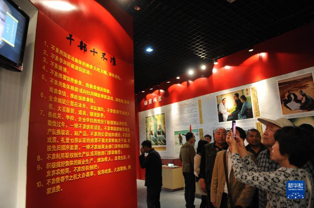 參觀(guān)者在河南省蘭考縣焦裕祿同志紀念館內觀(guān)看焦裕祿起草的“干部十不準”展板(2014年5月5日攝)。新華社記者 朱祥 攝