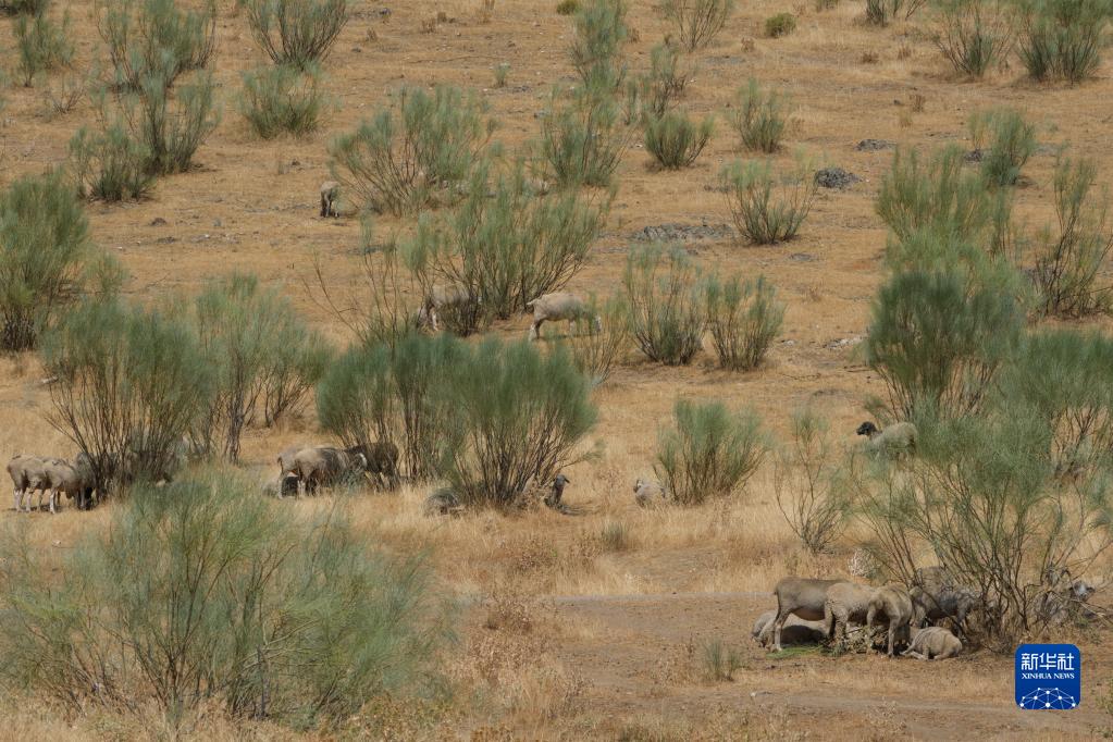 這是8月15日在西班牙錫哈拉水庫附近拍攝的羊群。