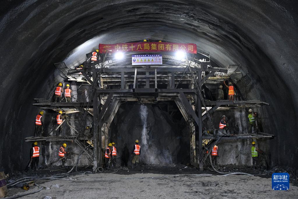 8月16日,在位于廣西環(huán)江毛南族自治縣的貴南高鐵九萬(wàn)大山四號隧道內,工作人員在隧道掌子面施工。