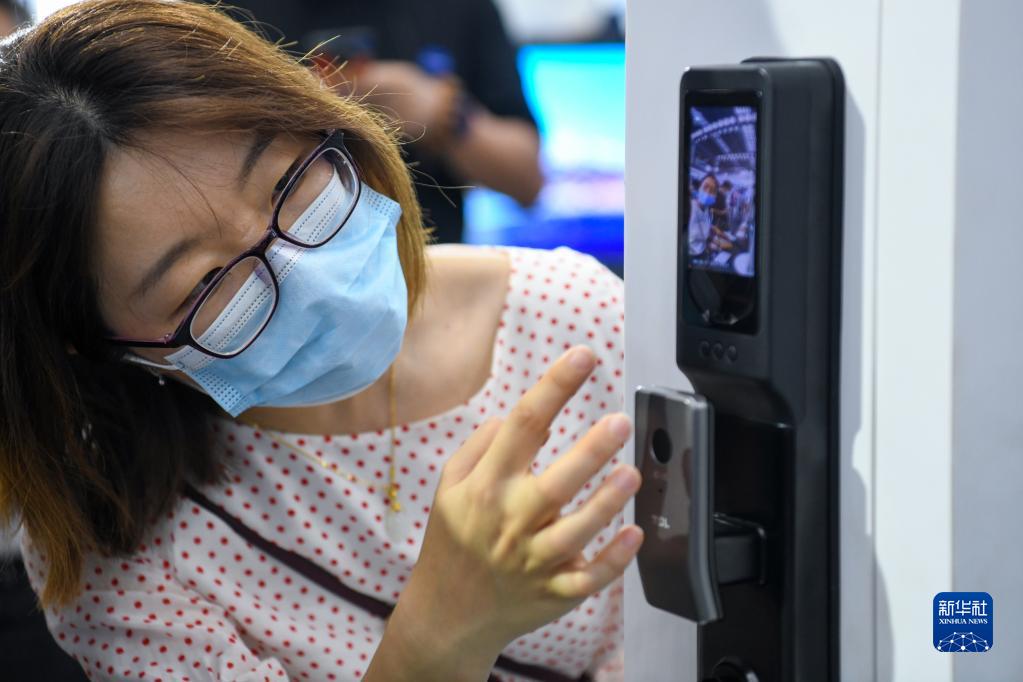 8月17日,在第十屆中國電子信息博覽會(huì )TCL展臺,觀(guān)眾在體驗可視安全智能鎖。
