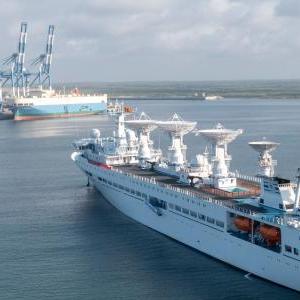 中國遠望5號船16日??克估锾m卡南部漢班托塔港,進(jìn)行物資補給。中國駐斯大使戚振宏和斯政府官員、中資機構代表等在碼頭迎接。
