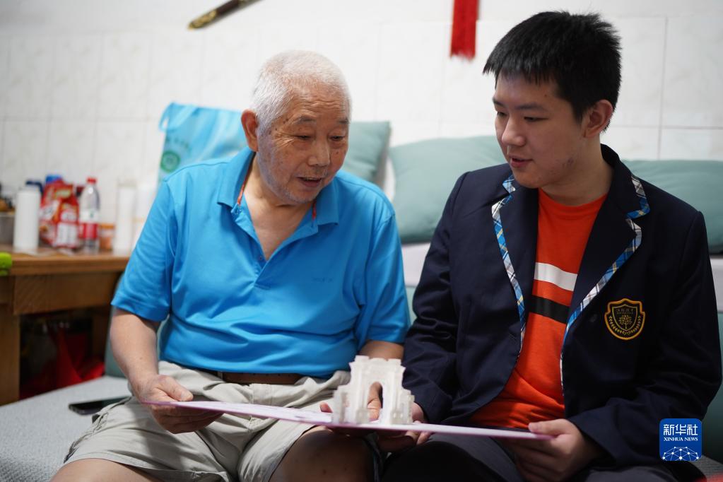 劉熙鴻(右)在家中和爺爺一起翻看錄取通知書(shū)(8月11日攝)。