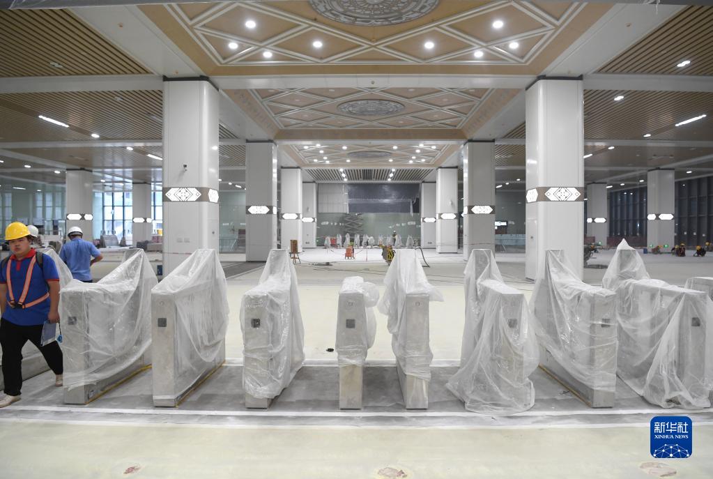8月17日拍攝的廣西南寧國際空港綜合交通樞紐工程高鐵站檢票口。