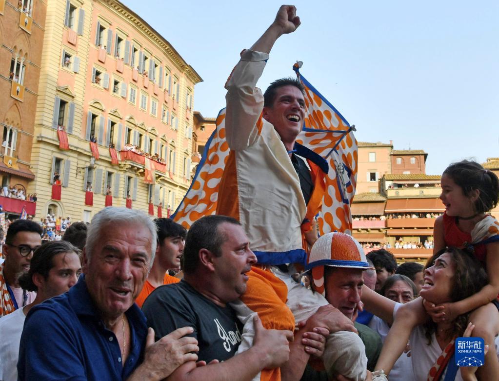 8月17日,獲勝騎手和支持者在意大利錫耶納慶祝勝利。
