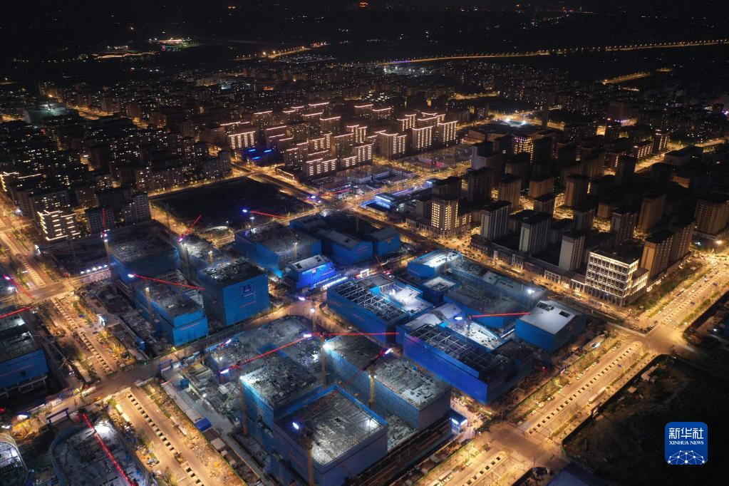 河北雄安新區容東片區雄安·電建智匯城建設項目夜景(8月17日攝,無(wú)人機照片)。