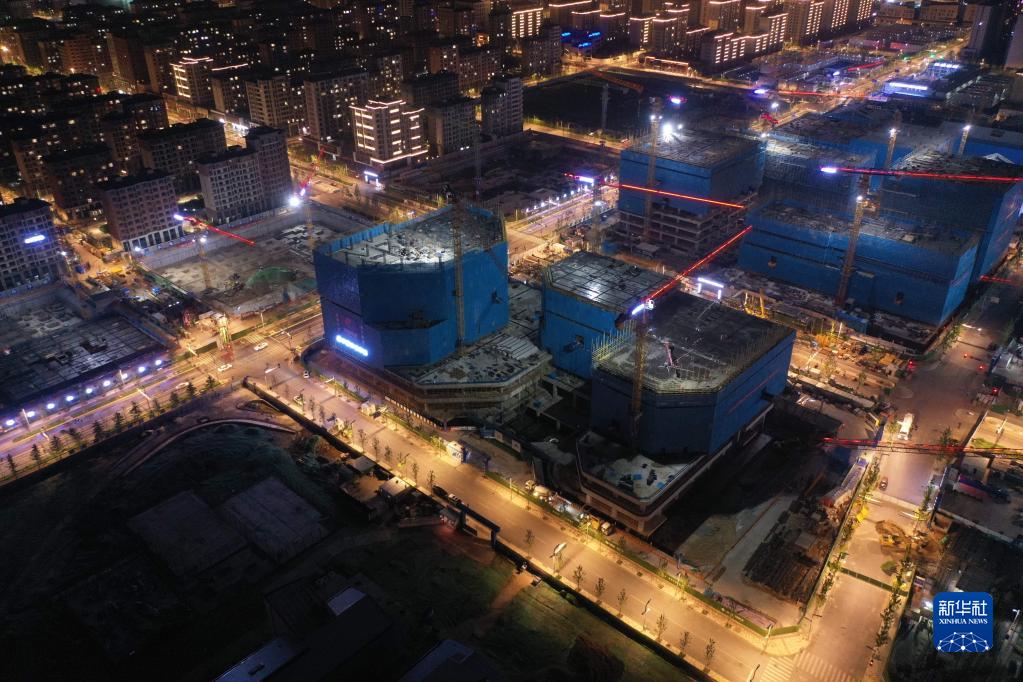河北雄安新區容東片區雄安·電建智匯城建設項目夜景(8月17日攝,無(wú)人機照片)。