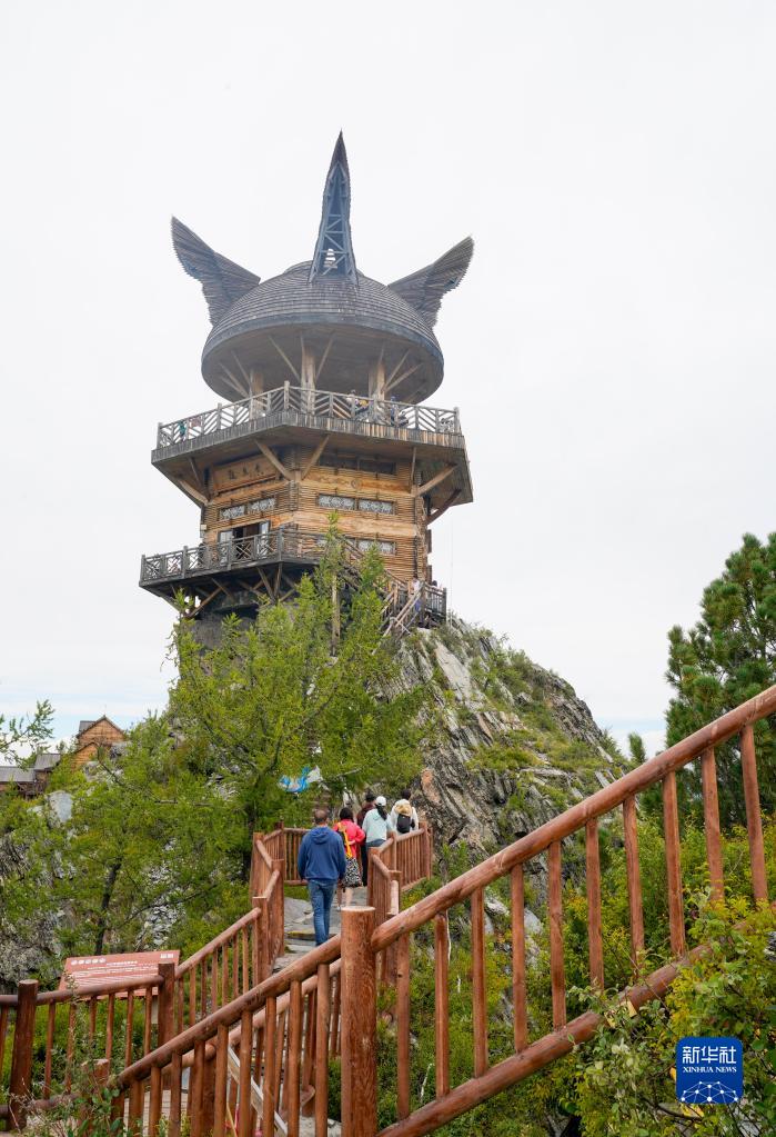 游客在喀納斯景區內攀登觀(guān)魚(yú)臺(8月12日攝)。