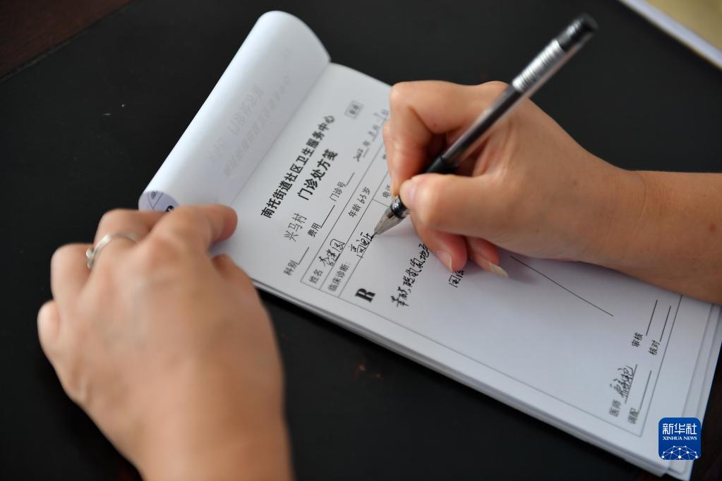 8月17日,顏新艷在衛生室內記錄村民的身體健康狀況。