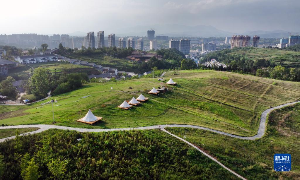 洛南縣城旁的露營(yíng)基地(8月17日攝,無(wú)人機照片)。