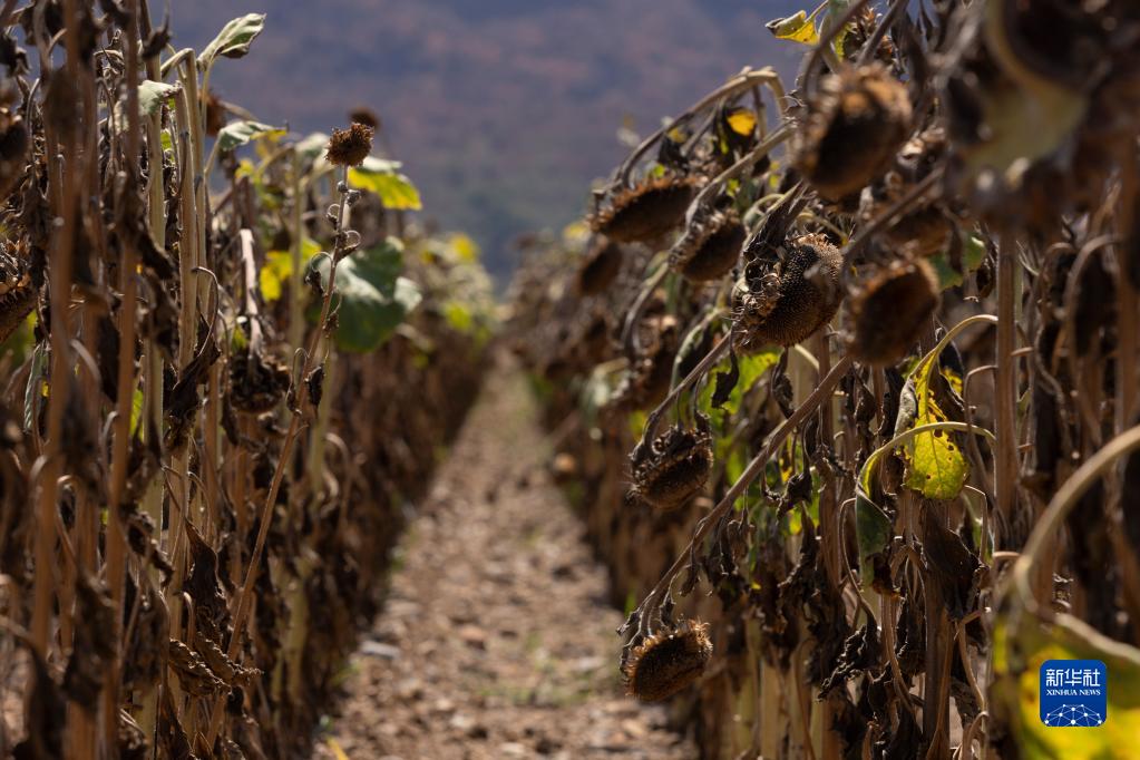 8月16日,在斯洛文尼亞戈里什卡區新戈里察市的喀斯特鎮,向日葵因干旱枯萎。