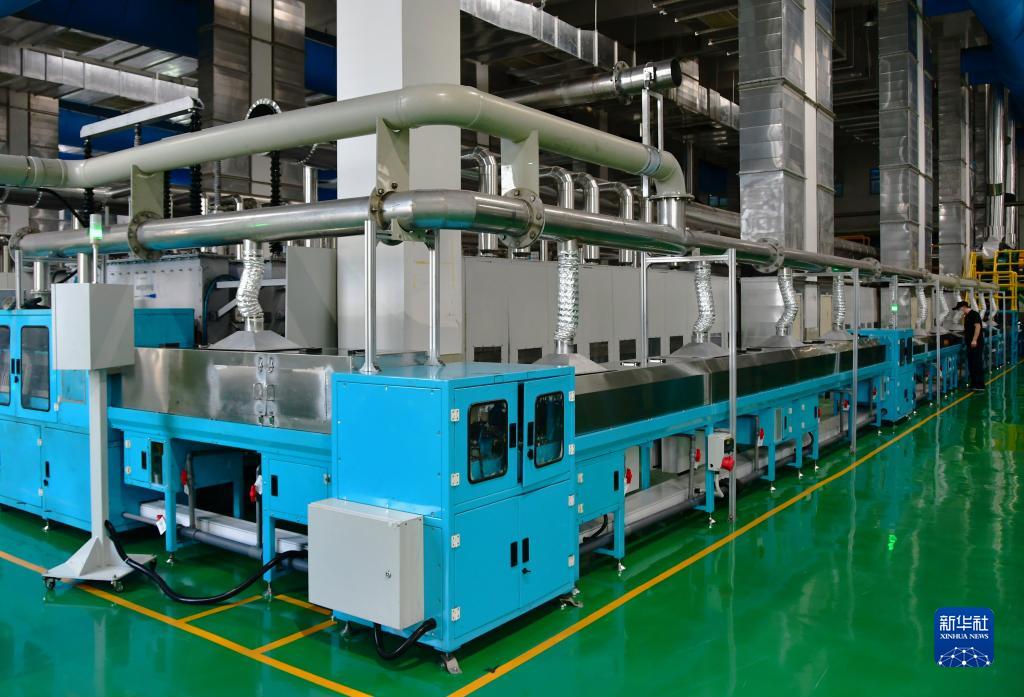在寧德廈鎢新能源材料有限公司車(chē)間,技術(shù)工人在燒結爐外循環(huán)巡查燒成后物料情況(8月17日攝)。