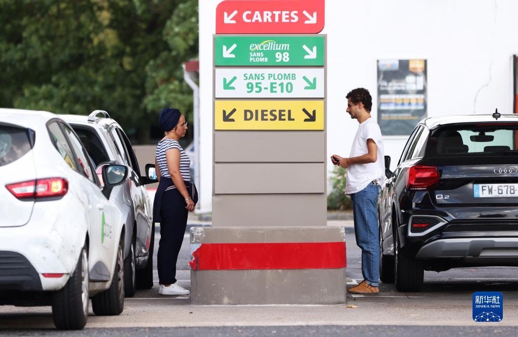 8月18日, 人們在法國巴黎郊區的一處加油站加油。