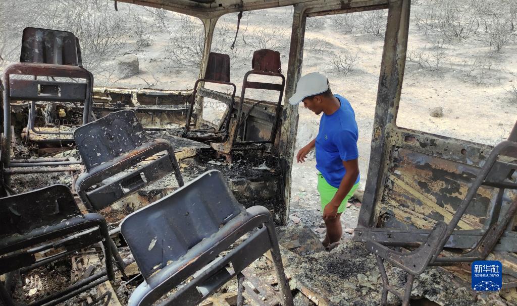 8月18日,在阿爾及利亞泰賴(lài)夫省,車(chē)輛被森林火災焚毀。