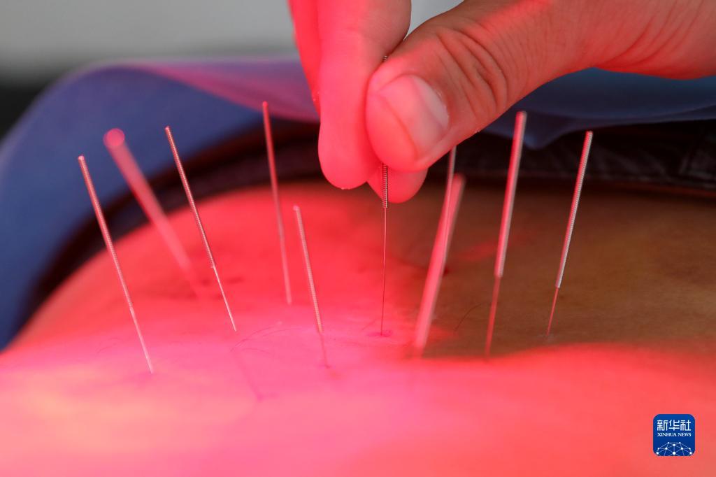 8月19日,河南省焦作市溫縣中醫院醫生為患者針灸。
