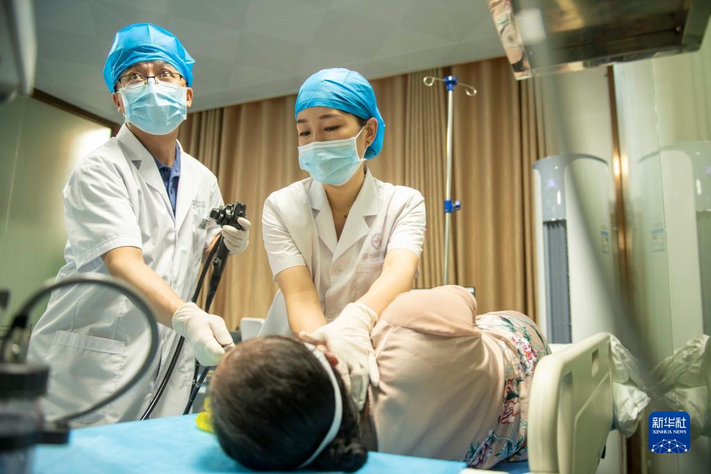 8月19日,在湖南省永州市道縣新區醫院,醫生為患者做胃鏡檢查。