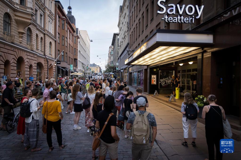 8月18日,人們在芬蘭赫爾辛基街頭觀(guān)看演出。