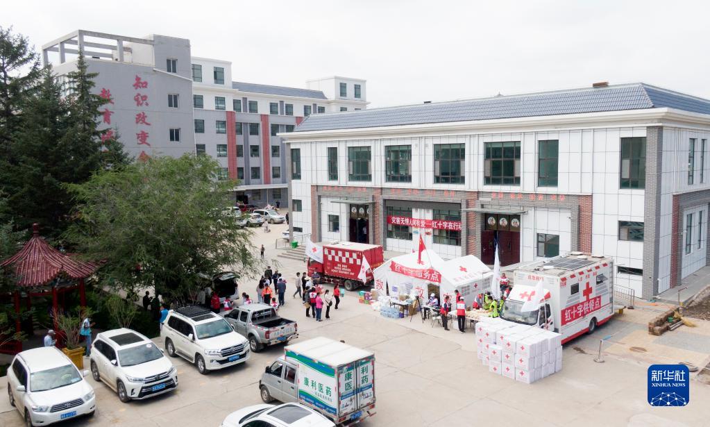 8月19日拍攝的大通一中臨時(shí)安置點(diǎn)(無(wú)人機照片)。