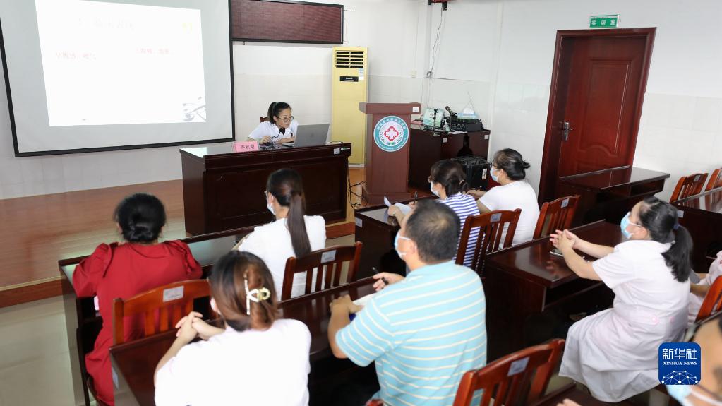 李秋菊在給當地醫務(wù)人員培訓(8月17日攝)。