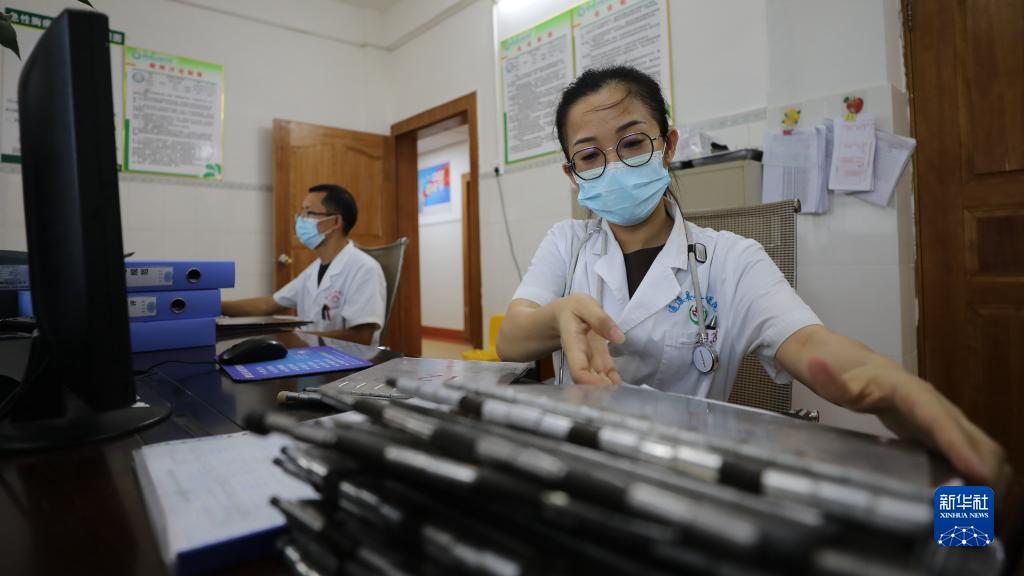 李秋菊(右)在整理患者檔案(8月17日攝)。