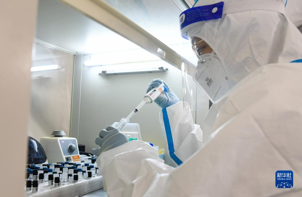 8月16日,在海南陵水黎族自治縣體育館氣膜實(shí)驗室,山東省醫療隊醫務(wù)人員在工作。