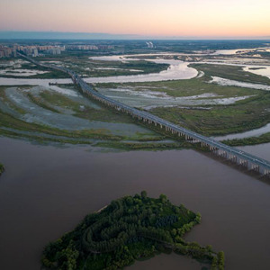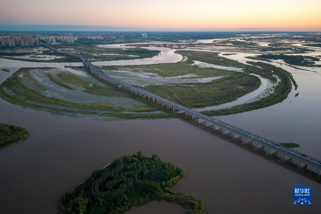 8月19日拍攝的位于哈爾濱市的陽(yáng)明灘大橋附近的濕地(無(wú)人機照片)。