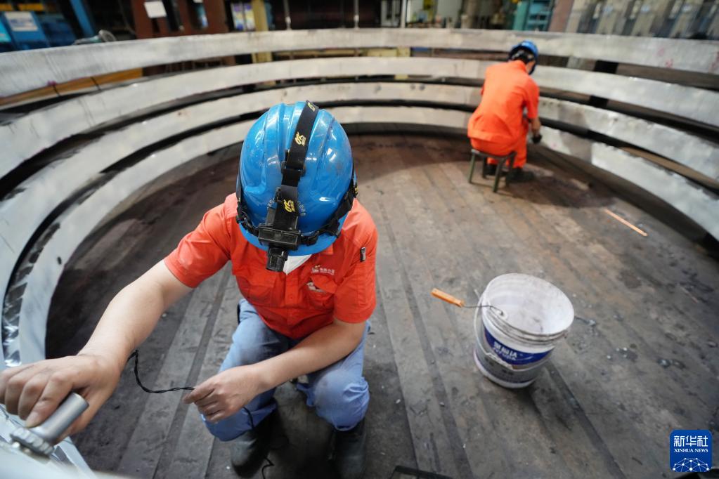 8月19日,在哈電集團哈爾濱電機廠(chǎng)有限責任公司的車(chē)間,工人在生產(chǎn)作業(yè)。新華社記者 王建威 攝