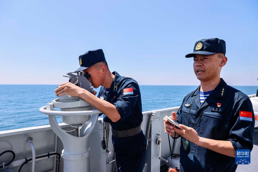 8月17日至20日,“國際軍事比賽-2022”“海洋之杯”比賽在山東青島附近海域進(jìn)行。這是中方參賽艦臨沂艦官兵在測量靶標方位(8月17日攝)。新華社發(fā)(劉再耀 攝)